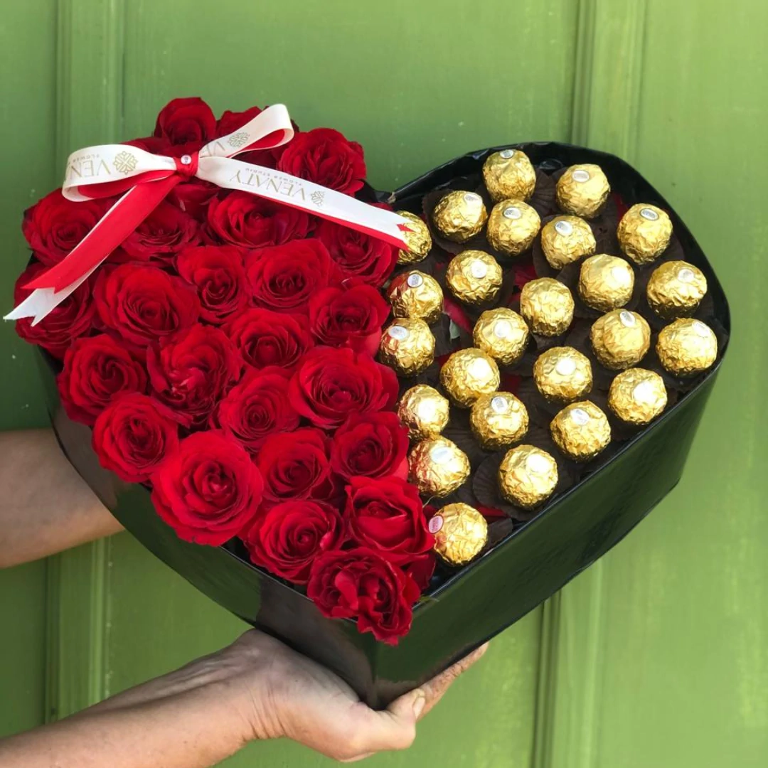 CORAZON DE FLORES Y CHOCOLATES