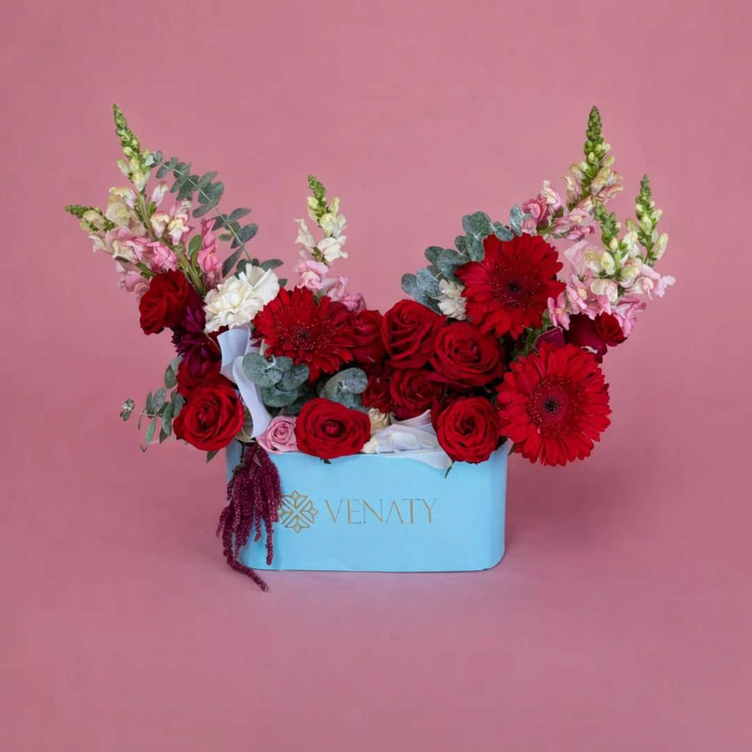 • ROSA ROJA, HERMOSA, GEBERAS Y FOLLAJES VARIADOS